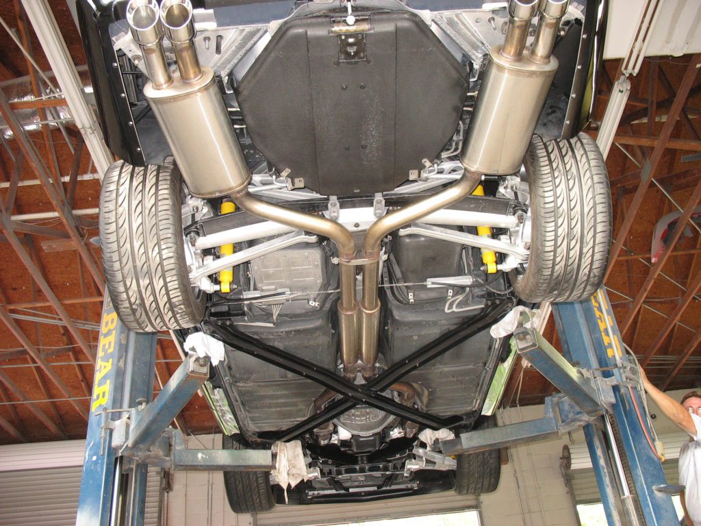 In addition to a complete frame-off restoration, the stock LT1 engine was treated to a Lingenfelter Performance Engineering’s (LPE) 383ci. upgrade. The 350 motor was stroked to 383ci and other modifications included a Callies 4340 3.75-inch forged steel crankshaft, and JE 10.8:1 forged aluminum pistons. The heads were ported and polished with stainless steel 2-inch intake and 1.56-inch exhaust valves, operated by an LPE-spec camshaft and 1.6:1rocker arms. Additionally, LPE included a pair of ceramic-coated headers, a heavy-duty radiator, and all new hoses and belts.
